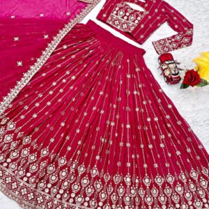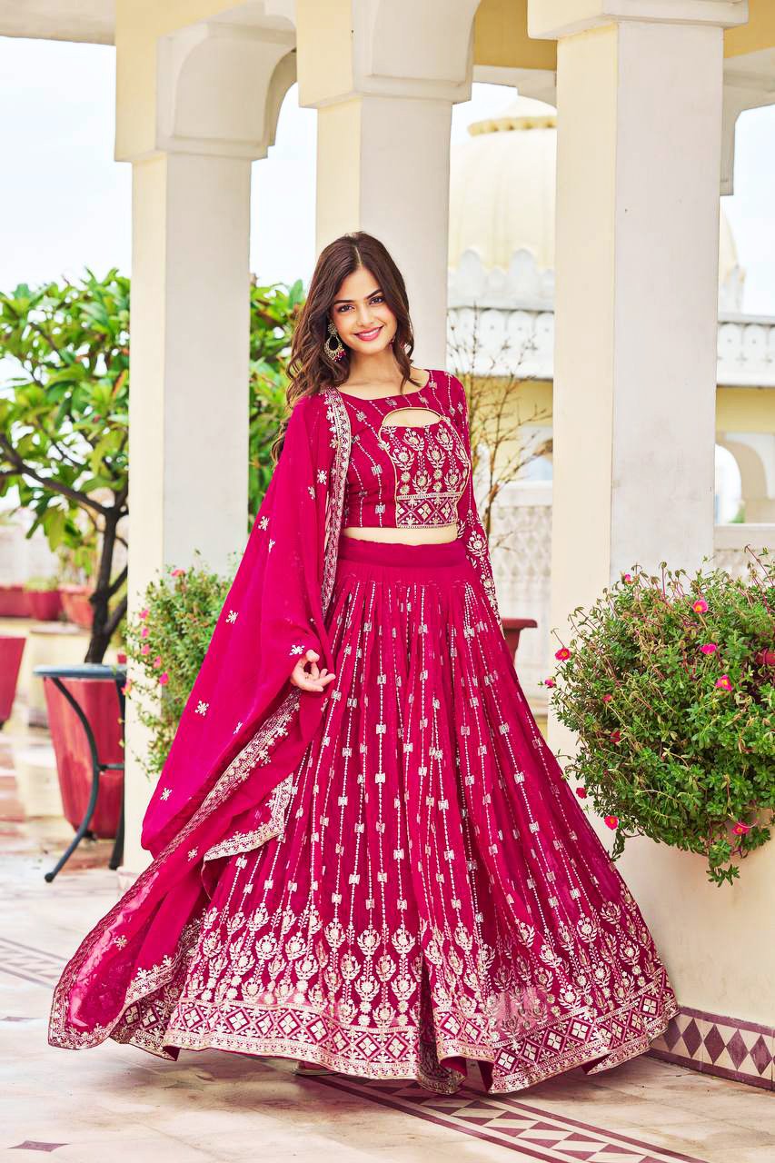 Premium Pure Tissue Silk Festive Lehenga Choli with Heavy Embroidery & Bandhej Dupatta