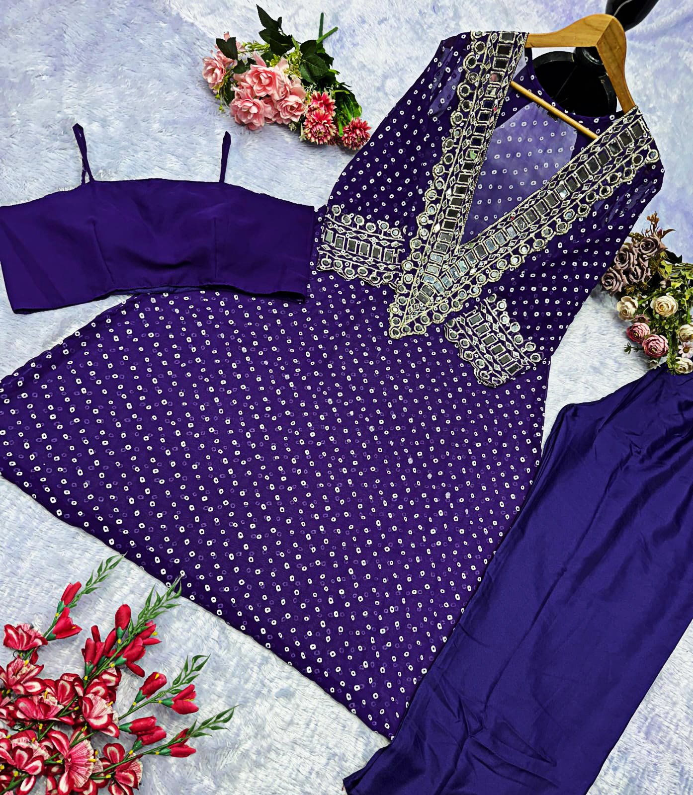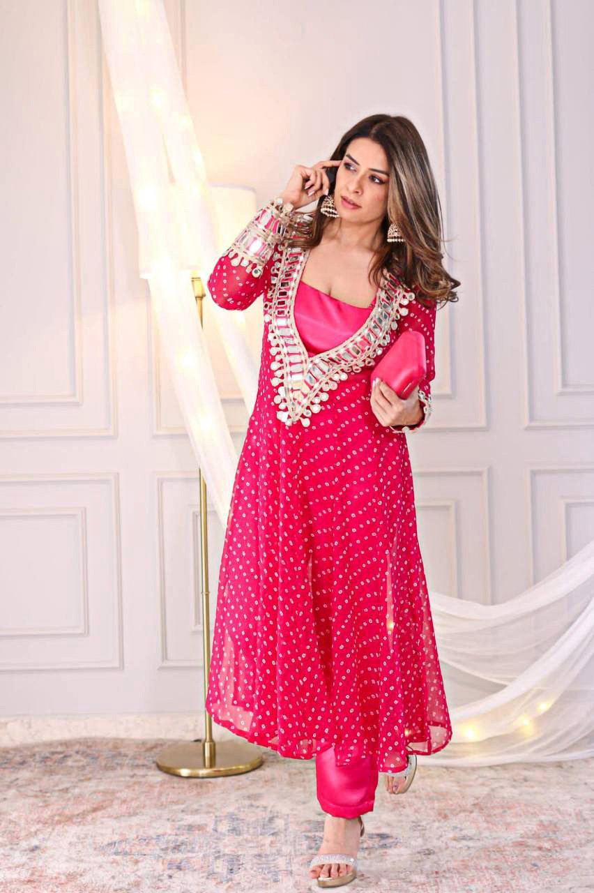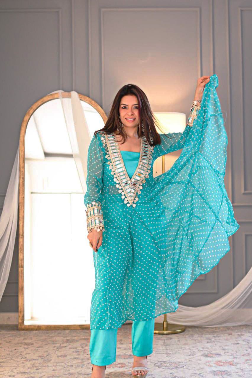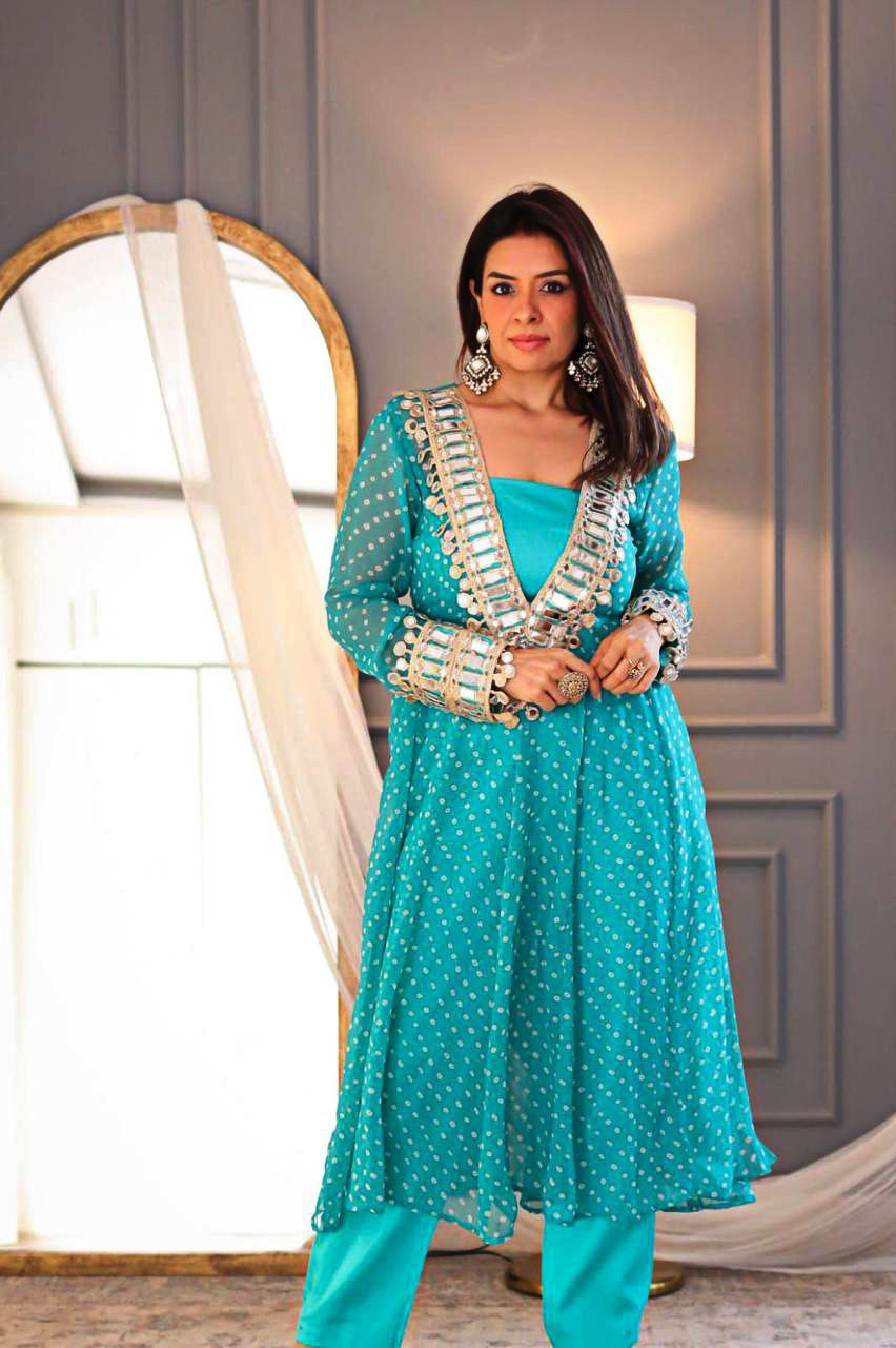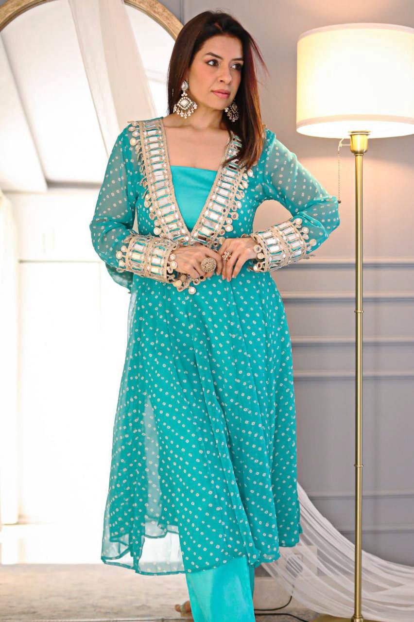 Elegant Mirror-Work Anarkali Set