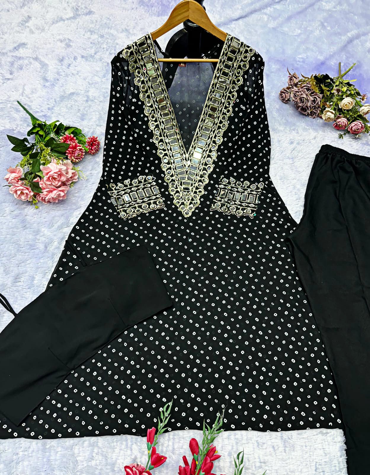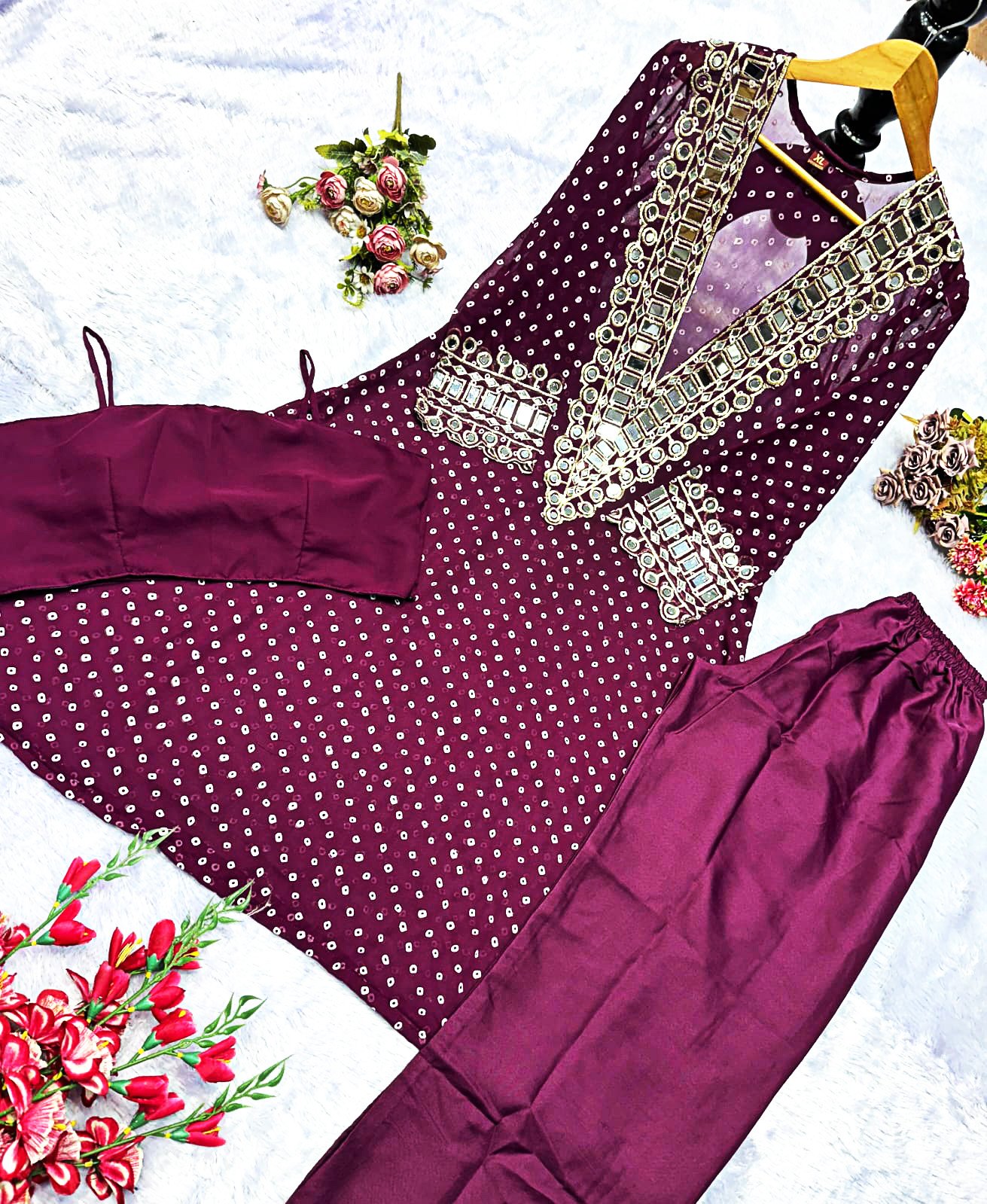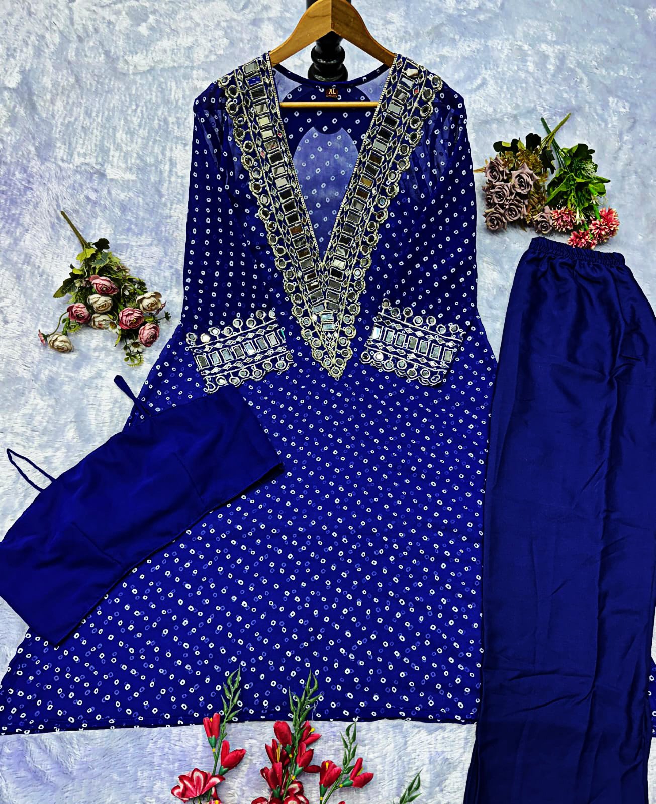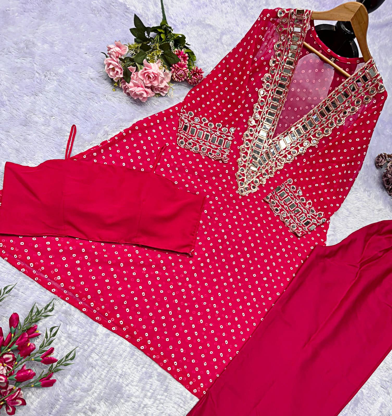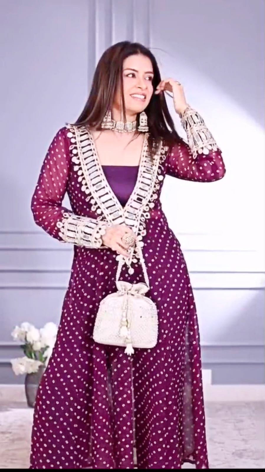 Elegant Mirror-Work Anarkali Set