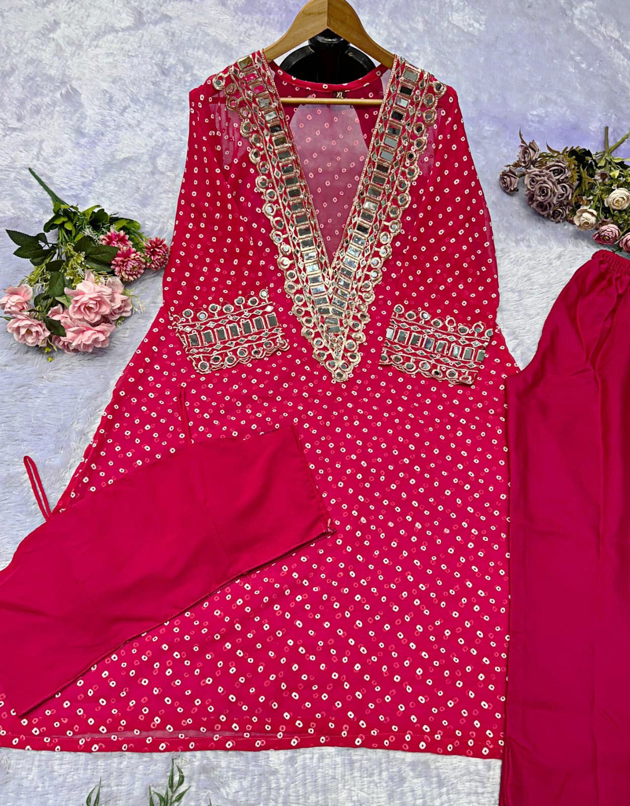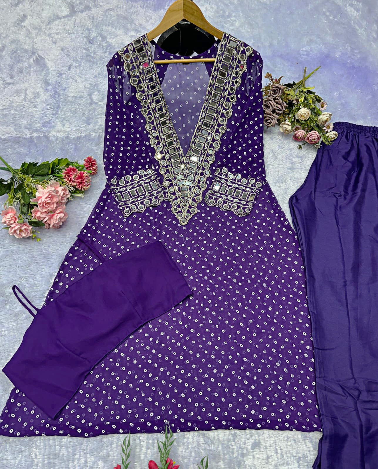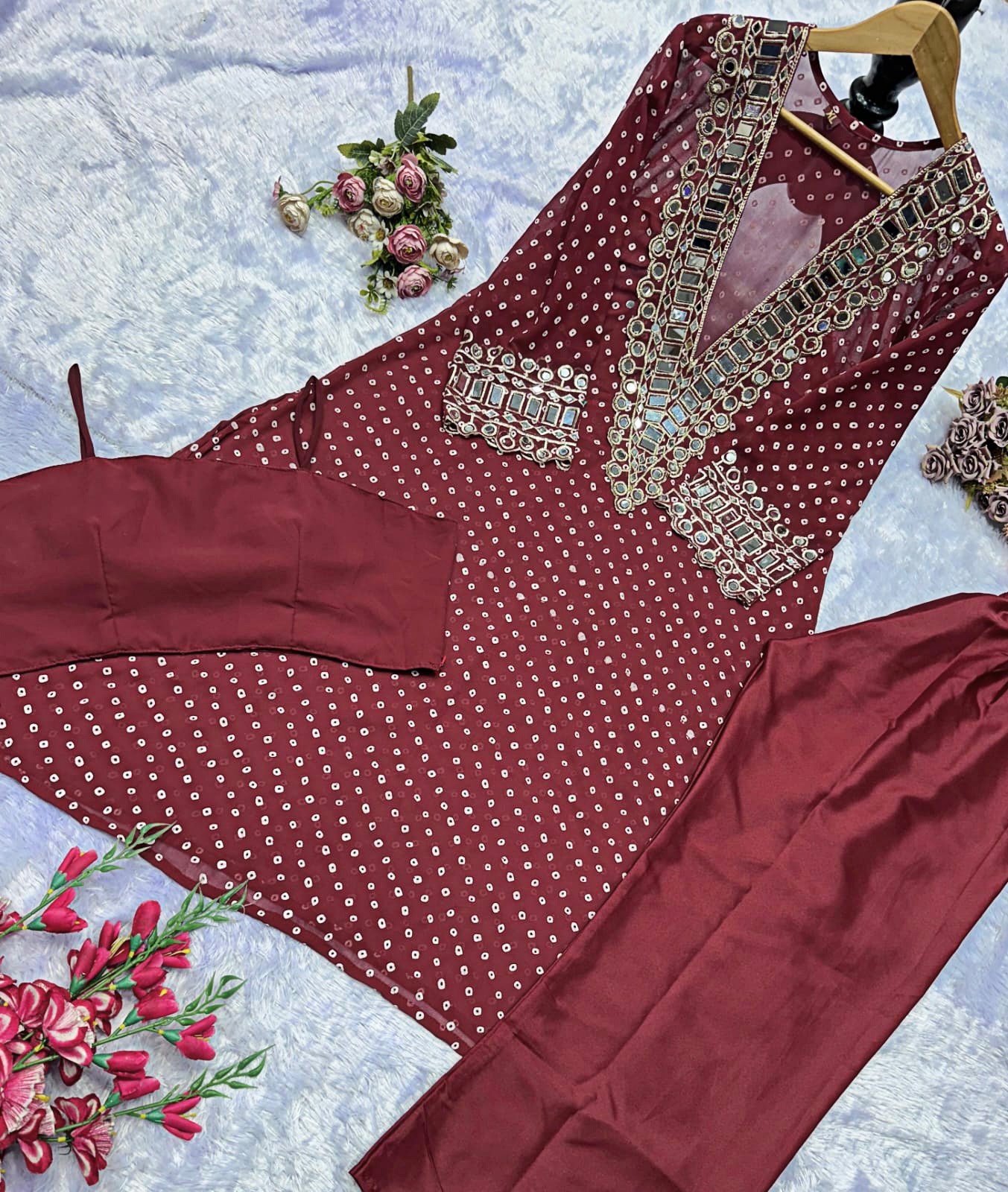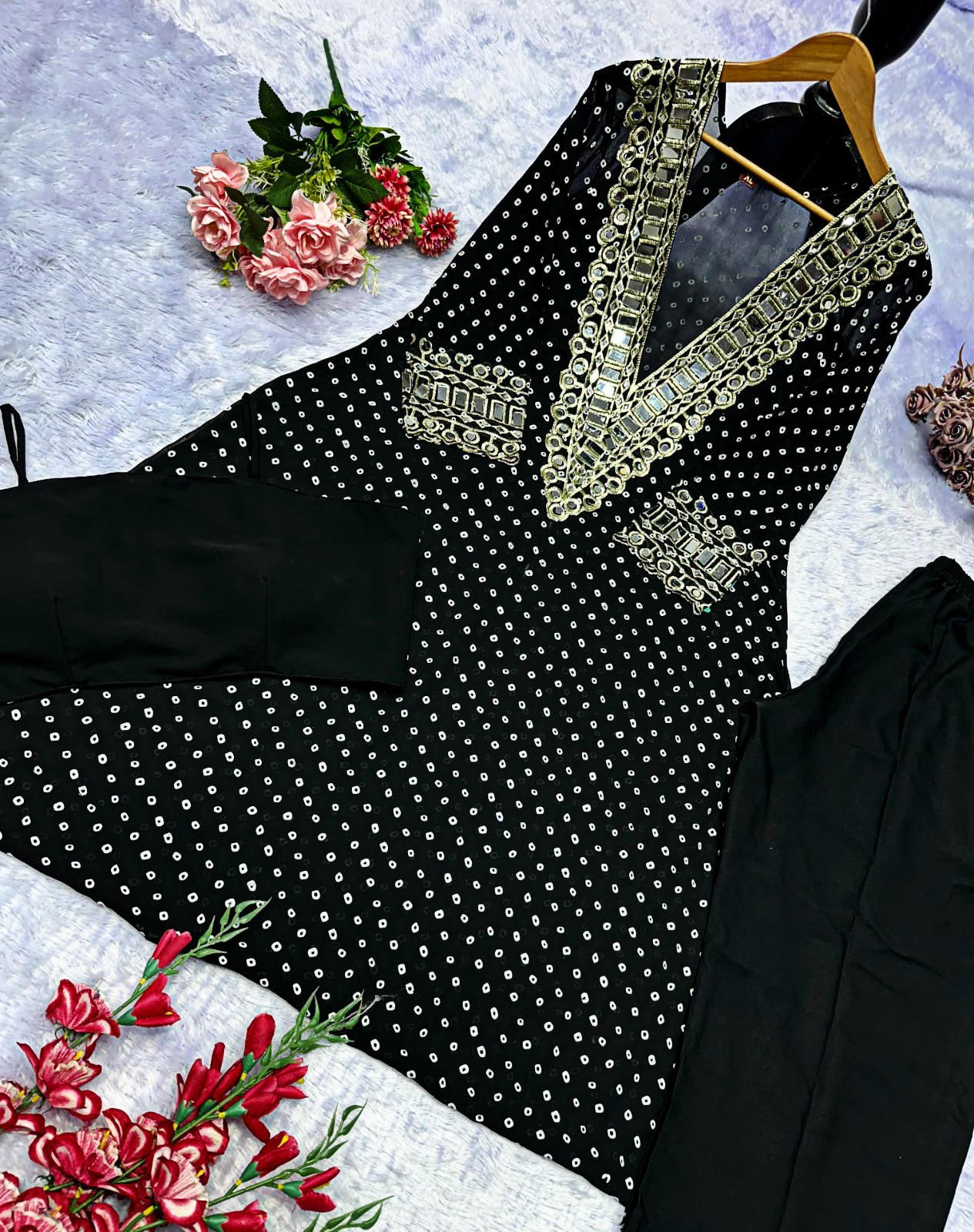 Elegant Mirror-Work Anarkali Set