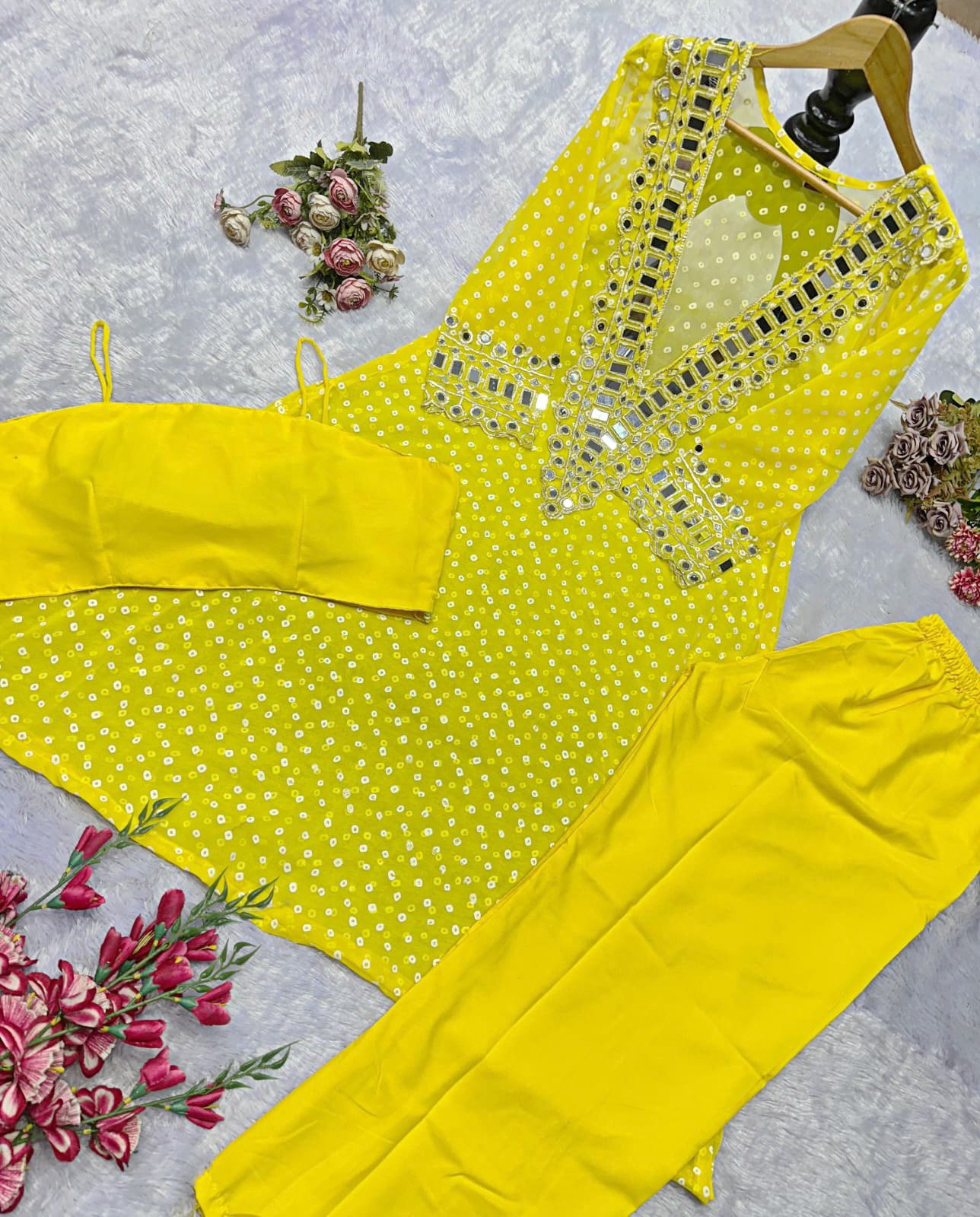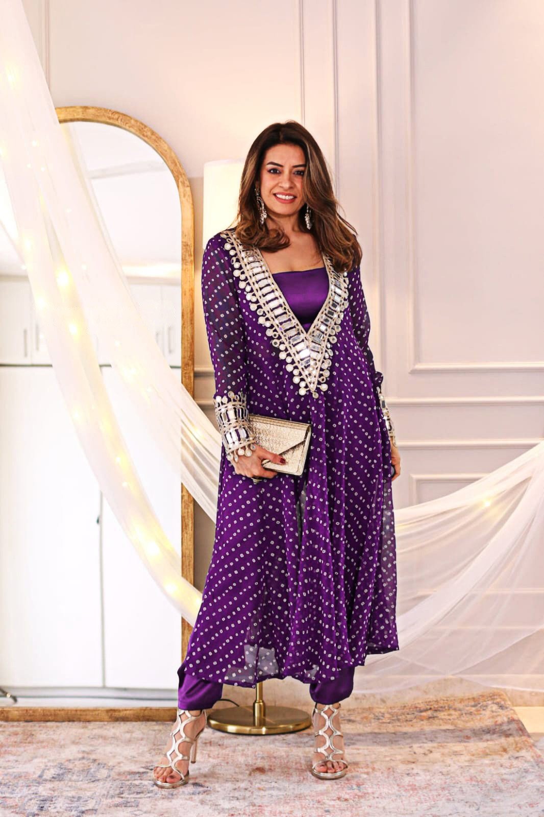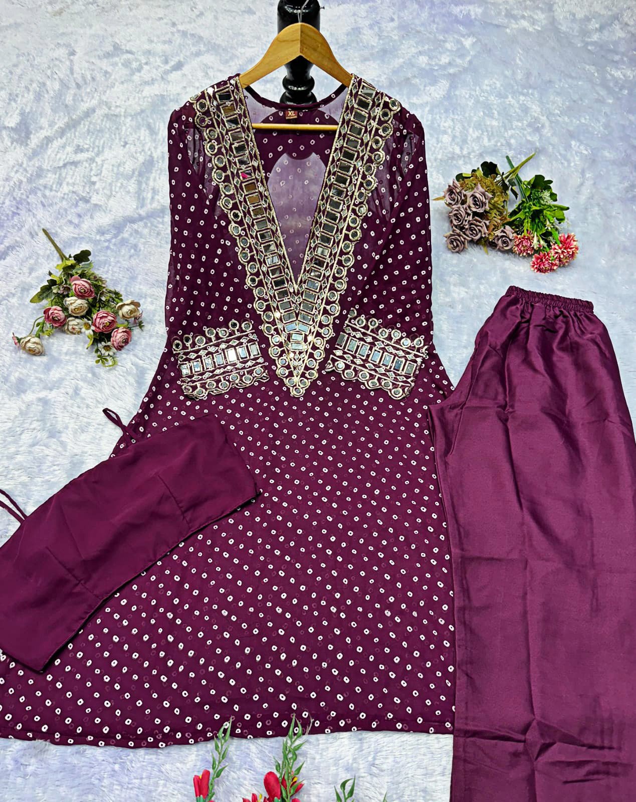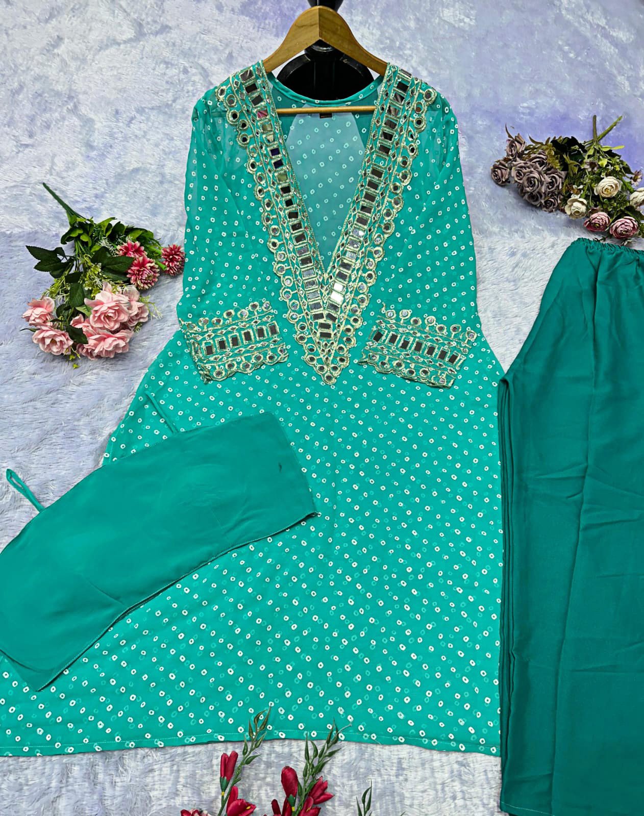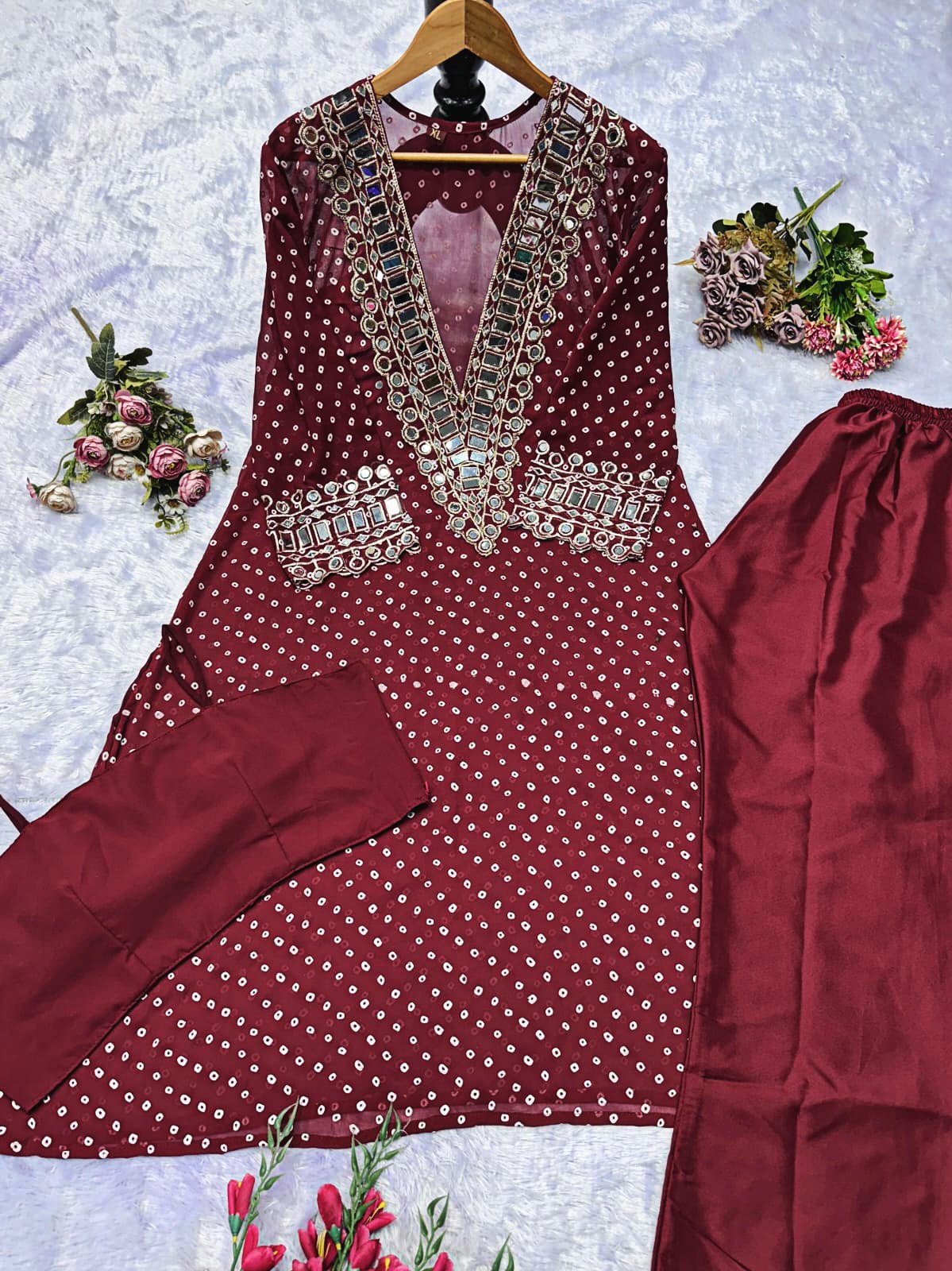 Elegant Mirror-Work Anarkali Set