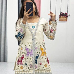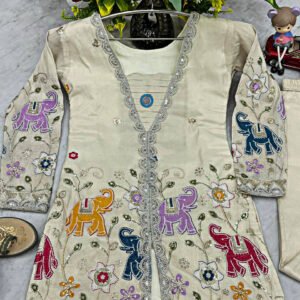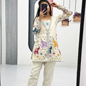 Kurta With Mirror Work And Beautiful Embroidery All Over,Paired Up With Cotton Plazzo Pants