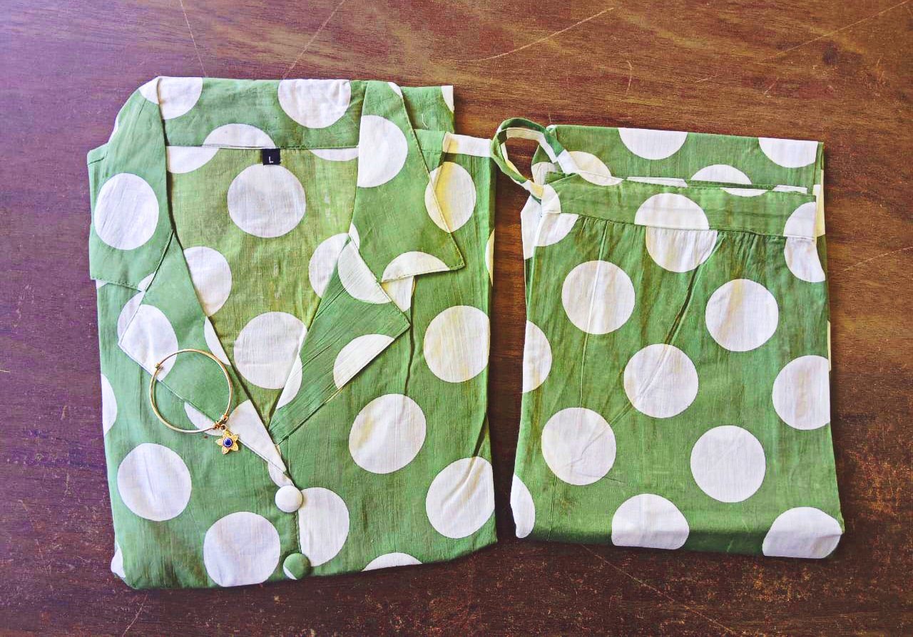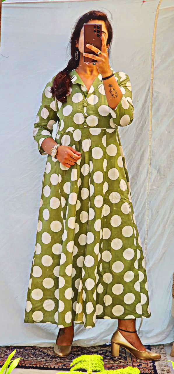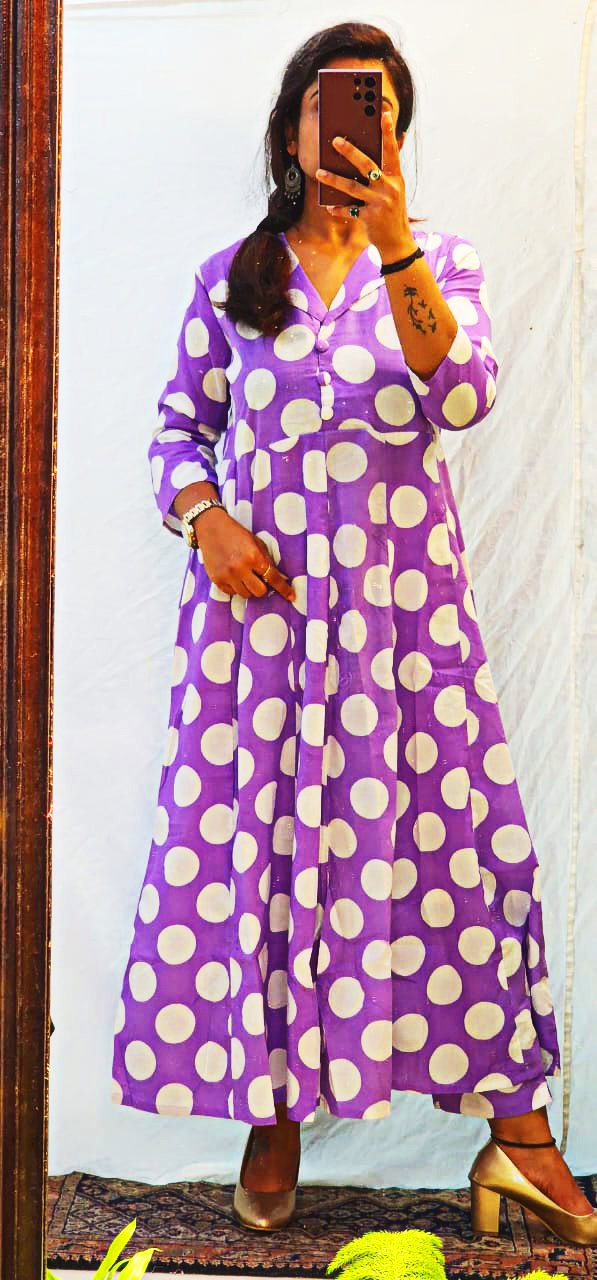 Bring out your playful side with our super stylish polka dot A-line kurti – a wardrobe essential that blends classic charm with modern vibes!