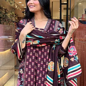 Be the first to review “Premium Cotton Anarkali Angrakha Kurti Set with Malmal Dupatta” Cancel reply